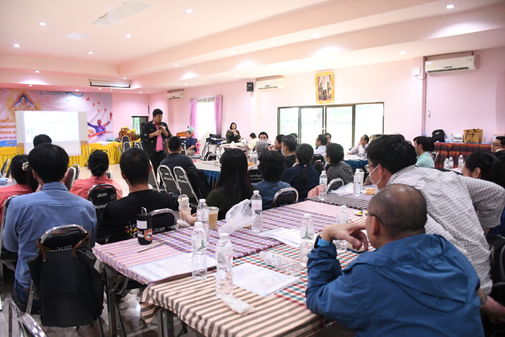 กิจกรรมวันแรกเริ่มต้นที่ตำบลศรีบุญเรือง อ.น้ำพอง จ.ขอนแก่น โดยมีนายกองค์การบริหารส่วนตำบลให้การต้อนรับ และคุณชิษนุวัฒน์ มณีศรีขำ หัวหน้าโครงการวิจัย ชี้แจงเป้าหมายและรูปแบบกิจกรรม ผู้เข้าร่วมได้เรียนรู้การทำ “ผังน้ำชุมชน” และ “ปฏิทินน้ำ” เพื่อวิเคราะห์สถานการณ์น้ำในรอบปี พร้อมฝึกใช้แอปพลิเคชันบันทึกข้อมูลแหล่งน้ำ เพื่อให้การจัดการน้ำมีข้อมูลรองรับและเชื่อมโยงสู่แผนระดับสูงได้อย่างมีประสิทธิภาพ