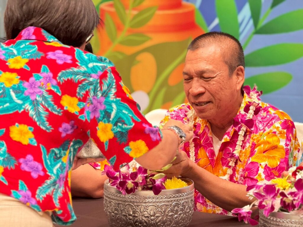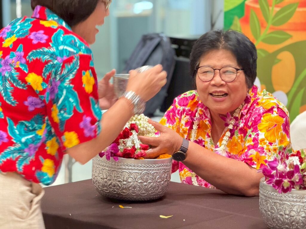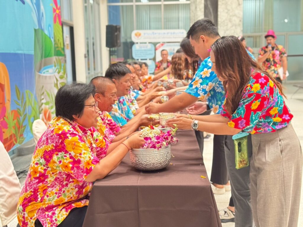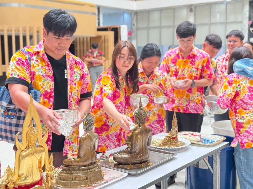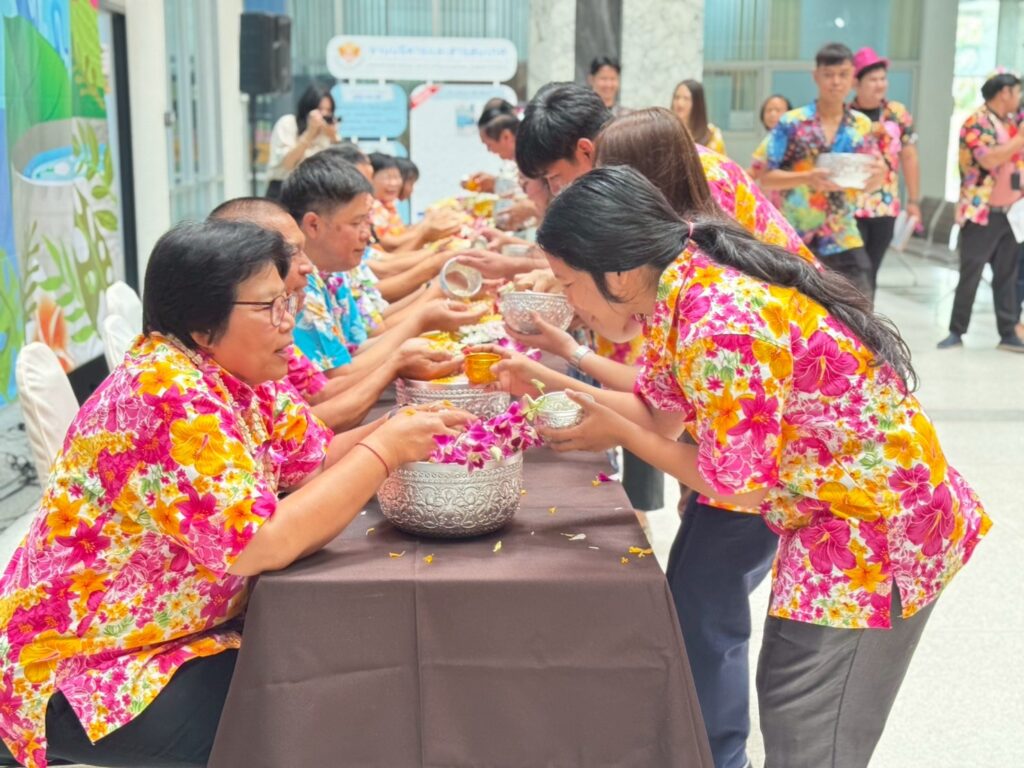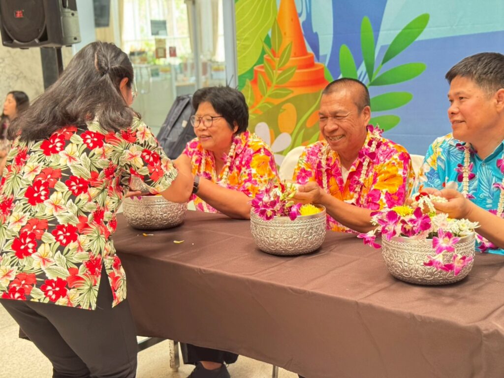 ภายในงานมีพิธีสรงน้ำพระพุทธรูปเพื่อความเป็นสิริมงคล และพิธีรดน้ำขอพรผู้บริหารและบุคลากรอาวุโส แสดงถึงความเคารพและกตัญญูตามขนบธรรมเนียมไทยอย่างงดงาม ซึ่งได้รับเกียรติจากรศ.ดร.ลำปาง แม่นมาตย์ ผู้อำนวยการสถาบันฯ กล่าวอวยพรแก่ชาวอาคารพิมล กลกิจ เนื่องในวันสงกรานต์