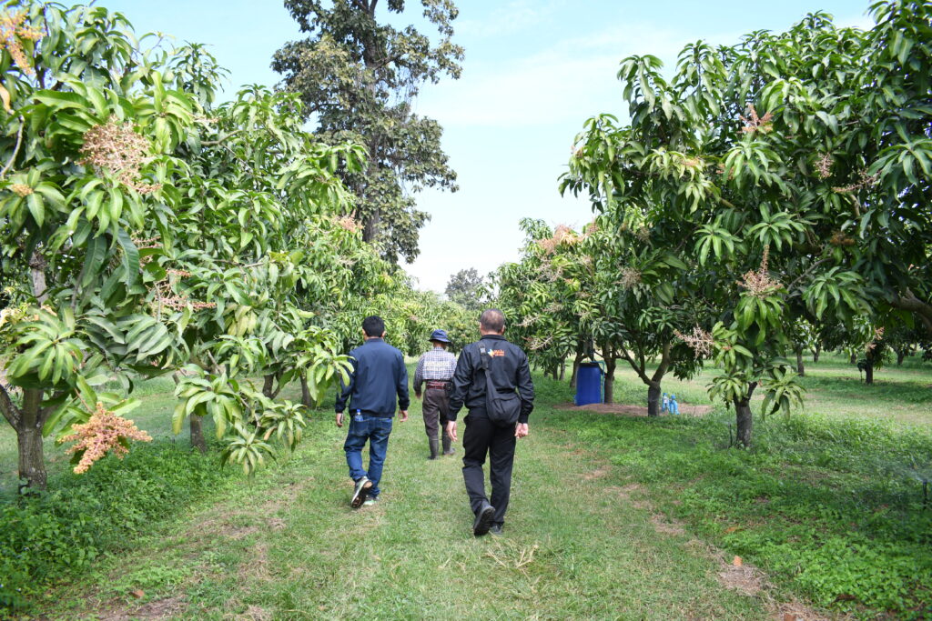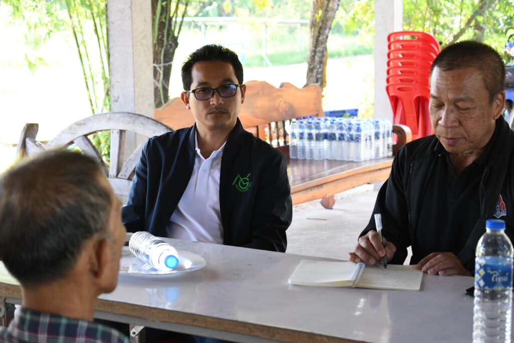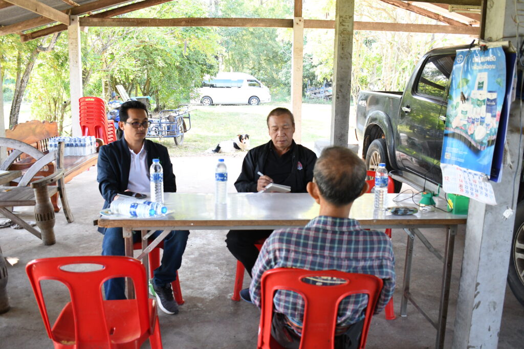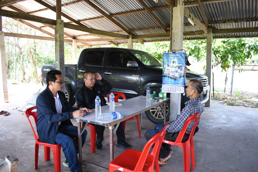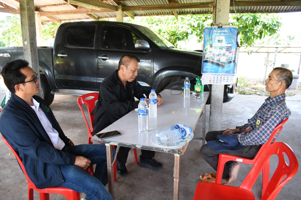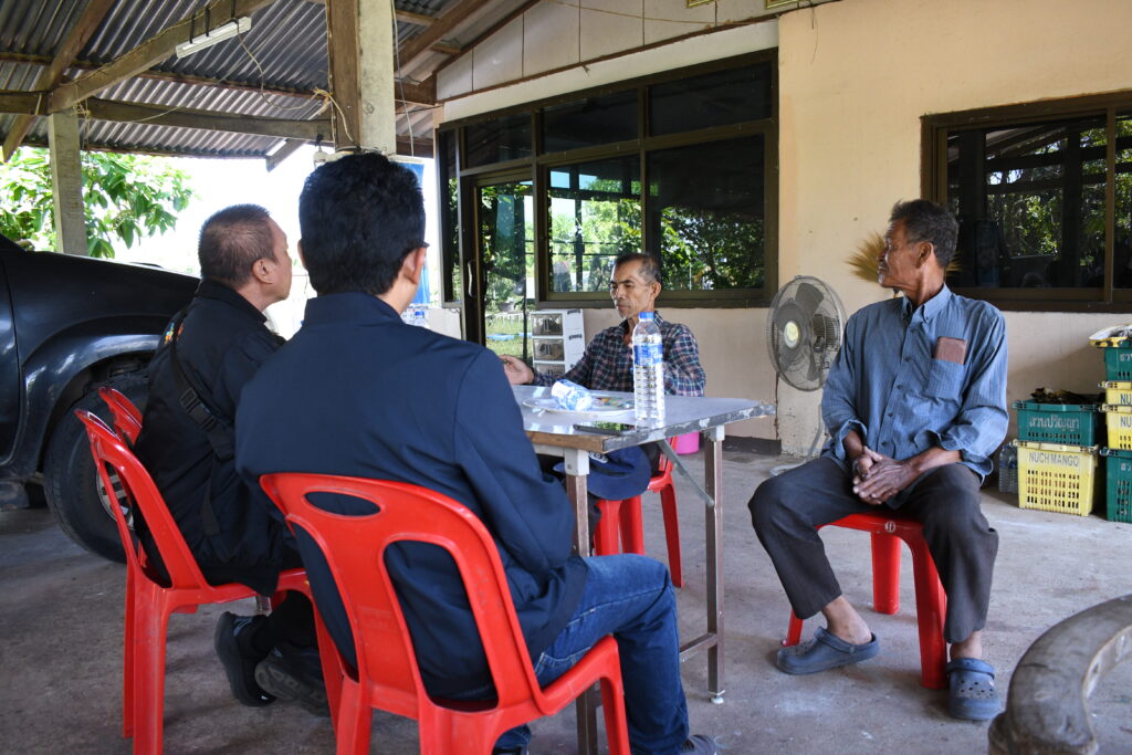 ในการลงพื้นที่ได้พูดคุยกับ นายสุธีย์ ทินราช ประธานกลุ่มวิสาหกิจชุมชนมะม่วงบ้านแฮดเพื่อการส่งออก ซึ่งมีสมาชิกถึง 38 ราย ได้สะท้อนถึงปัญหาสำคัญที่ทำให้การปลูกมะม่วงนอกฤดูกาลไม่สามารถทำได้อย่างเต็มที่ ไม่ว่าจะเป็นปัญหาเรื่องน้ำที่ไม่เพียงพอ ปัญหาการขุดเจาะบ่อบาดาลยาก การเจาะบ่อบาดาลที่มีเงื่อนไขที่ซับซ้อน และถ้าแก้ไขปัญหาเรื่องน้ำได้จะทำให้เกษตรกรสามารถปลูกมะม่วงนอกฤดูกาลได้และจะทำให้มีราคาที่สูงขึ้นและสามารถส่งออกไปสู่ต่างประเทศได้ จึงทำให้นักวิจัยในโครงการเข้ามาส่งเสริมโครงการระบบการให้น้ำอย่างแม่นยำในสวนมะม่วงน้ำดอกไม้สีทองเพื่อการส่งออกเข้ามาทำระบบการจัดการที่เหมาะสมและเพียงพอต่อมะม่วงนอกฤดูกาลเพื่อให้เกษตรกรมีราคาผลผลิตที่ดีขึ้นและมีมะม่วงส่งออกได้ตลอดทั้งปี นอกจากการลงพื้นที่ติดตามพูดคุยปัญหาเกษตรกร ประธานกลุ่มเผยว่าการปลูกมะม่วงนอกฤดูกาลสามารถส่งออกได้ราคาสูงถึง 110 บาท/กก. รวมพื้นที่ปลูกทั้งหมดถึง 900 ไร่ ผลผลิตรวมทั้งกลุ่มมากถึง 1,000 ตัน และตลาดที่ส่งออกมากถึง 40% ซึ่งทำให้เกษตรกรมีความพึ่งพอใจในการใช้ระบบน้ำเข้ามาช่วยในการคำนวนปริมาณใช้น้ำได้อย่างมีประสิทธิภาพ