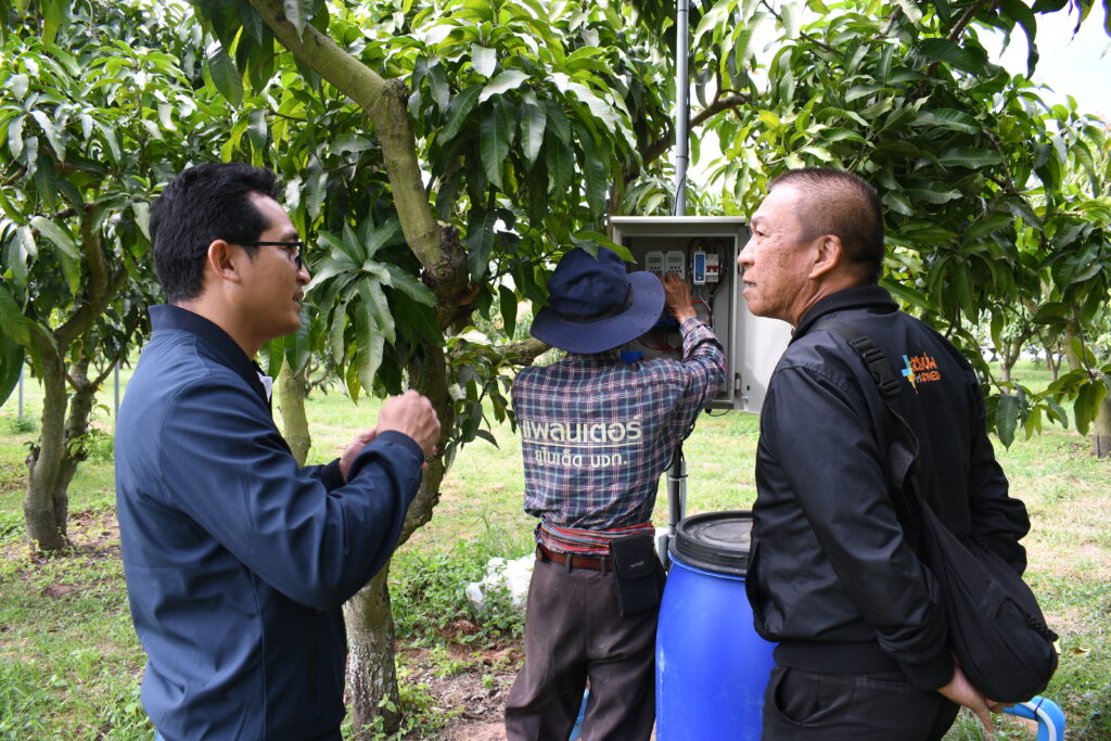 เมื่อวันที่ 4 ธันวาคม 2568 สถาบันวิจัยยุทธศาสตร์และประสานความร่วมมือเพื่อพัฒนาภาคตะวันออกเฉียงเหนือ มหาวิทยาลัยขอนแก่น (สยปพ. มข.) ในฐานะหน่วยงานขับเคลื่อนโครงการขับเคลื่อนการดำเนินงานจัดทำแผนบูรณาการทรัพยากรน้ำระดับจังหวัด ภายใต้แผนงานน้ำมั่นคง ไม่ท่วม ไม่แล้ง ใน 10 จังหวัด ในภาคตะวันออกเฉียงเหนือ ได้ลงพื้นที่ติดตามความก้าวหน้าของโครงการระบบการให้น้ำอย่างแม่นยำในสวนมะม่วงน้ำดอกไม้สีทองเพื่อการส่งออกจังหวัดขอนแก่นและจังหวัดชัยภูมิ โดยมี รศ.ดร.รณฤทธิ์ ฤทธิรณ เป็นหัวหน้าโครงการ ซึ่งในการลงพื้นที่ในครั้งนี้มี อาจารย์สมยศ มีทา นักวิจัยในโครงการเป็นผู้ให้ความรู้และเยี่ยมชมพื้นที่ ณ อำเภอบ้านแฮด จังหวัดขอนแก่น