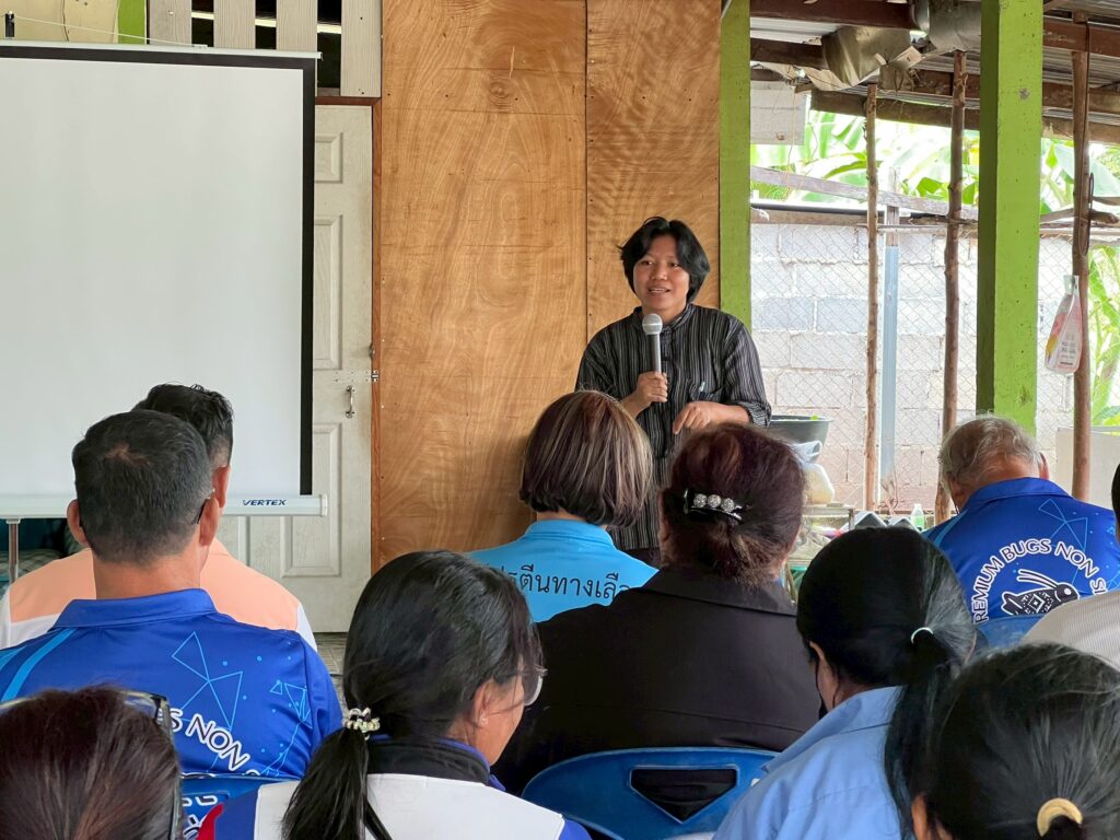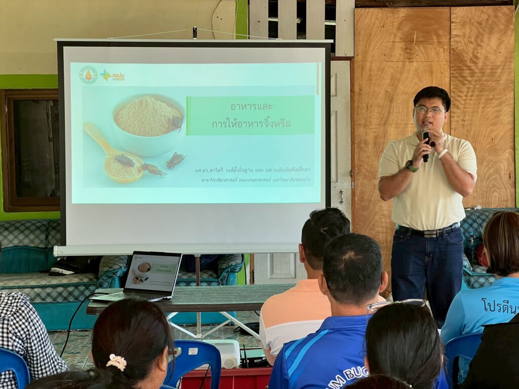เมื่อวันที่ 13 พฤศจิกายน 2568 สถาบันวิจัยยุทธศาสตร์ และประสานความร่วมมือเพื่อพัฒนาภาคตะวันออกเฉียงเหนือ มหาวิทยาลัยขอนแก่น (สยปพ.มข.) นำโดย นางสาวเมธตา นาศรี นักวิชาการเกษตร และเป็นผู้ช่วยวิจัยในโครงการฯ ได้จัดการอบรมเชิงปฏิบัติการการสร้างกระบวนการเรียนรู้ (Appropriate Learning Process) เพื่อพัฒนาขีดความสามารถเชิงผู้ประกอบการผลิตอาหารจิ้งหรีด โดยมี นางสาวกษมา ตั้งมุททาภัทรกุล นักวิชาการเกษตรชำนาญการพิเศษ คณะเกษตรศาสตร์ มหาวิทยาลัยขอนแก่น นายพัสกร พุทธฉายา นักศึกษาหลังปริญญาเอก เป็นวิทยากรในการบรรยาย และนางสาวนันทนัช สมพาน ผู้ช่วยวิทยากร ในการให้ความรู้เกี่ยวกับการพัฒนาศักยภาพกลุ่มผู้ประกอบการเลี้ยงจิ้งหรีดให้สามารถผลิตอาหารจิ้งหรีดต้นทุนต่ำโดยใช้ทรัพยากรพื้นถิ่น โดยมีผู้เข้าร่วมอบรมทั้งหมด 23 ครัวเรือน