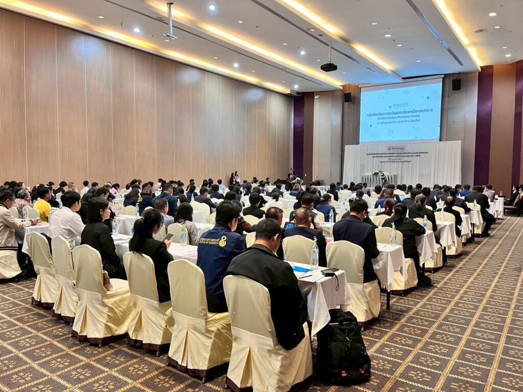 สยปพ.มข ได้ร่วมกับ สำนักบริหารยุทธศาสตร์กลุ่มจังหวัดภาคตะวันออกเฉียงเหนือตอนกลาง มีผู้เข้าร่วมประชุม จำนวน 180 คน จากหน่วยงานภาครัฐ ได้แก่ สำนักงานจังหวัด สำนักงานคลังจังหวัด สำนักงานแรงงานจังหวัด สำนักงานส่งเสริมการปกครองส่วนท้องถิ่น สำนักงานสวัสดิการคุมครองแรงงานจังหวัด สำนักงานที่ดินจังหวัด สำนักงานปศุสัตว์จังหวัด สำนักงานวัฒนธรรมจังหวัด สำนักงานประมงจังหวัด สำนักงานเกษตรและสหกรณ์จังหวัด สำนักงานพาณิชย์จังหวัด สำนักงานสาธารณสุขจังหวัด สำนักงานท่องเที่ยวและกีฬา สถาบันฝีมือแรงงาน สำนักงานส่งเสริมการเรียนรู้ประจำจังหวัด สำนักงานศึกษาธิการ สำนักงานพลังงานจังหวัด สำนักงานทรัพยากรธรรมชาติและสิ่งแวดล้อม สำนักงานพัฒนาชุมชนจังหวัด สำนักงานแขวนทางหลวงจังหวัด สำนักงานประชาสัมพันธ์จังหวัด สำนักงานปฏิรูปที่ดินจังหวัด แขวงทางหลวงชนบท จากภาคเอกชนและภาคประชาสังคม  ได้แก่ หอการค้าจังหวัด สภาอุตสาหกรรมจังหวัด สำนักงานสภาเกษตรจังหวัด สภาอุตสาหกรรมท่องเที่ยวจังหวัด และภาคประชาสังคม
