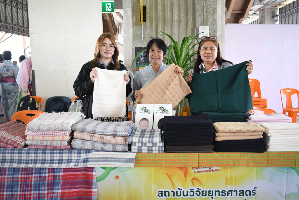 กิจกรรมในครั้งนี้ มีวัตถุประสงค์เพื่อให้คณาจารย์ บุคลากร นักศึกษามหาวิทยาลัยขอนแก่น และหน่วยงานเครือข่ายกว่า 50 บูทที่ร่วมนำองค์ความรู้ ให้บริการ 4 ด้าน ได้แก่ บริการด้านสุขภาพ บริการด้านการให้ความรู้และการศึกษา บริการด้านส่งเสริมอาชีพชุมชน และบริการด้านการดูแลสัตว์เลี้ยง สำหรับสถาบันวิจัยยุทธศาสตร์ฯ (สยปพ.มข.) ได้ร่วมออกบูธนิทรรศการส่งเสริมด้านบริการวิชาการ เพื่อเผยแพร่ผลงานองค์ความของสถาบันวิจัยยุทธศาสตร์ฯ และการส่งเสริมอาชีพของชุมชนของกลุ่มเกษตรกรในโครงการ มข.แก้จนจำนวน 19 คน จาก 8 กลุ่ม 5 ตำบล 4 อำเภอ ได้แก่ 1. ผลิตภัณฑ์ผ้าพิมพ์ลายใบไม้ จากกลุ่มวิสาหกิจชุมชน Dong Design ผ้าพิมพ์ลายธรรมชาติ อำเภออุบลรัตน์ จังหวัดขอนแก่น 2. ผลิตภัณฑ์ผ้าขาวม้าแปรรูป จากกลุ่มวิสาหกิจชุมชนตัดเย็บบ้านดง อำเภออุบลรัตน์ จังหวัดขอนแก่น 3. สินค้าผักปลอดภัย จากสวนสลัดจันทร์ดาว ตำบลโนนท่อน อำเภอเมือง จังหวัดขอนแก่น 4. สินค้าผักปลอดภัย จากสวนสุพัตรา ตำบลบ้านดง อำเภออุบลรัตน์ จังหวัดขอนแก่น 5. กลุ่มผ้ามัดหมี่ย้อมสีธรรมชาติ อำเภอสีชมพู จังหวัดขอนแก่น 6. ผลิตภัณฑ์ผ้าฝ้ายทอมือบ้านนาชุมแสง ตำบลนาชุมแสง อำเภอภูเวียง จังหวัดขอนแก่น 7. กลุ่มถั่วลิสง อำเภอสีชมพู จังหวัดขอนแก่น 8. กลุ่มมะพร้าวน้ำหอม ตำบลทุ่งโป่ง อำเภออุบลรัตน์ จังหวัดขอนแก่น