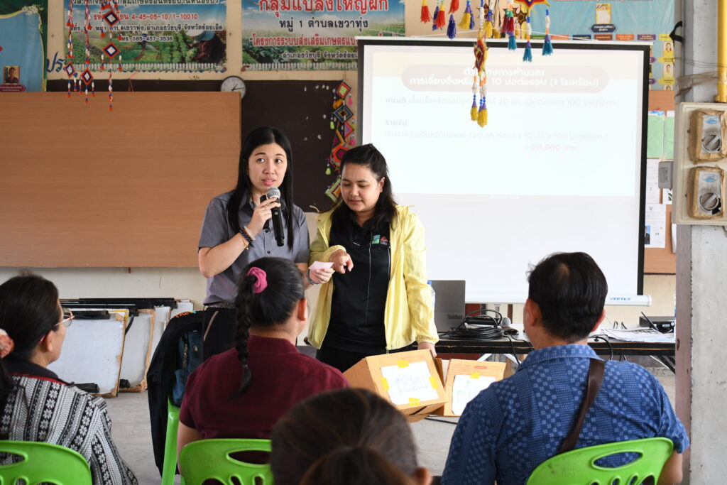 การอบรมครั้งนี้ รองศาสตราจารย์ ดร.ลำปาง แม่นมาตย์ ผู้อำนวยการสถาบันวิจัยยุทธศาสตร์ฯ เป็นประธานในการจัดอบรม และ ดร.สริญญา ลัทธิ์ถีระสุวรรณ วิทยากร ได้ถ่ายทอดความรู้ในหัวข้อเรื่อง “ทำความรู้จักกับธุรกิจจิ้งหรีดของฉัน” บรรยายให้ความรู้เกี่ยวกับมุมมองในการดำเนินธุรกิจ เรื่องการวางแผนการผลิต และการบริหารความเสี่ยง การควบคุมต้นทุนและคุณภาพ เครือข่ายและเชื่อมโยงตลาด โดยวิธีการเปลี่ยนเรื่องการเงินที่ดูน่าปวดหัว ให้กลายเป็นเรื่องสนุกสนานผ่านเกมบัตรคำ ที่ออกแบบมาโดยเฉพาะ เพื่อสอนให้ผู้เข้าร่วมเข้าใจแนวคิดเรื่อง ต้นทุนคงที่ (Fixed Cost) และ ต้นทุนแปรผัน (Variable Cost) ซึ่งเป็นหัวใจสำคัญของการทำธุรกิจ