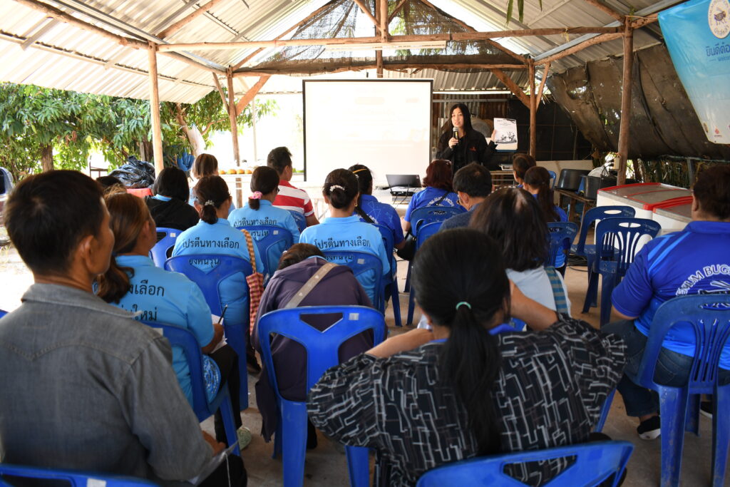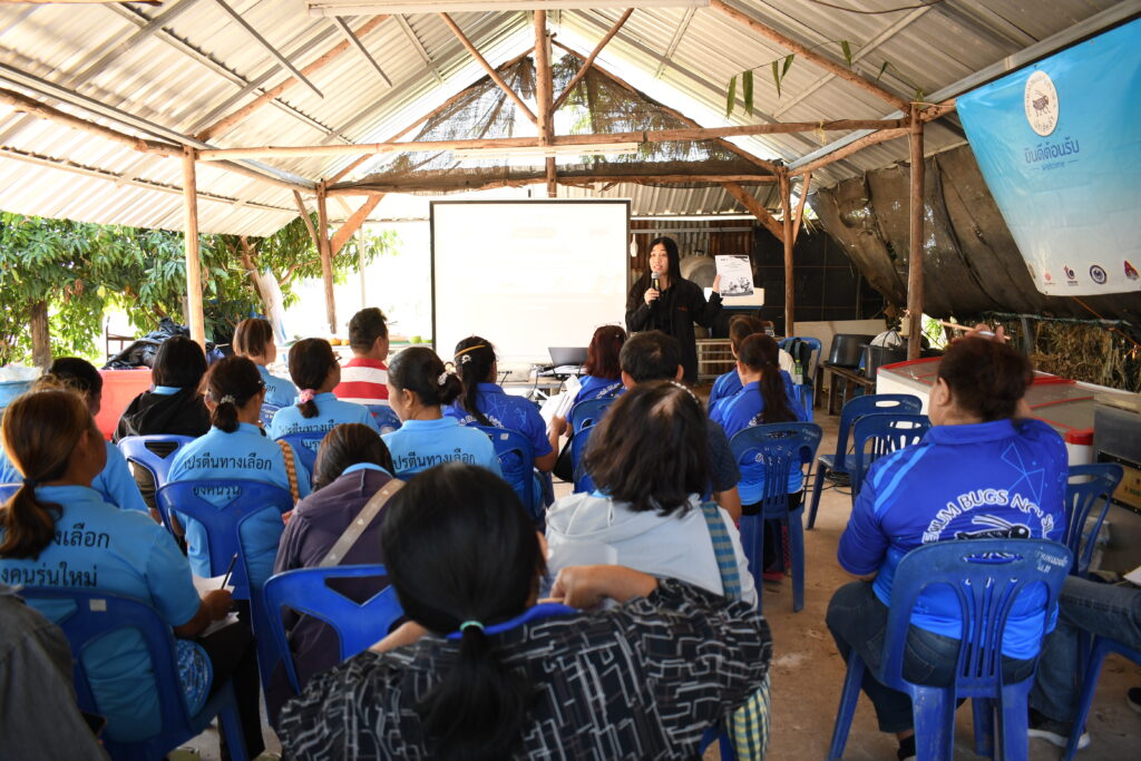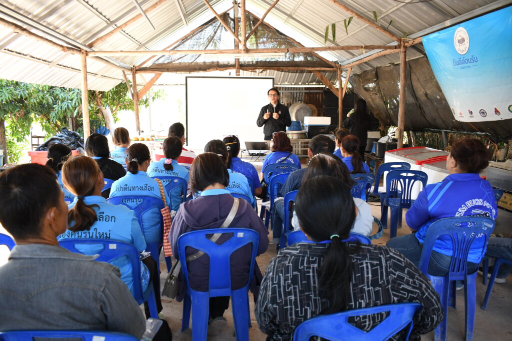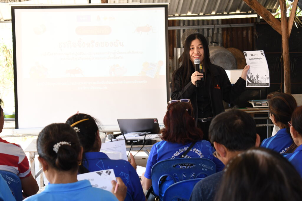 การอบรมครั้งนี้ ดร.สริญญา ลัทธิ์ถีระสุวรรณ วิทยากร ได้ถ่ายทอดความรู้ในหัวข้อเรื่อง “ทำความรู้จักกับธุรกิจจิ้งหรีดของฉัน” บรรยายให้ความรู้เกี่ยวกับมุมมองในการดำเนินธุรกิจ การวางแผนธุรกิจ การตลาด การบันทึกรายรับรายจ่ายธุรกิจและครัวเรือน และการบริหารจัดการความเสี่ยง ระหว่างการอบรมให้ความรู้ยังมีกิจกรรมที่ให้ผู้ประกอบการและเกษตรกรได้ร่วมสนุกเกี่ยวกับการแยกค่าใช้จ่ายระหว่างค่าใช้จ่ายครัวเรือนกับธุรกิจจิ้งหรีด และแยกค่าใช้จ่ายในธุรกิจจิ้งหรีดที่เป็นค่าใช้จ่ายครั้งเดียวกับค่าใช้จ่ายในแต่ละรอบ จากนั้นได้ให้ผู้ประกอบการลงมือคำนวณรายรับ-รายจ่ายธุรกิจจิ้งหรีด ซึ่งได้รับความร่วมมือจากผู้เข้าร่วมอบรมเป็นอย่างดี มีผู้เข้าร่วมอบรมจำนวน 31 คน โดยการอบรมในครั้งนี้มีความคาดหวังว่าจะสามารถเพิ่มพูนความรู้ด้านการจัดการธุรกิจเลี้ยงจิ้งหรีด เพื่อที่ผู้ประกอบการสามารถนำความรู้ไปต่อยอดในธุรกิจ การคาดการณ์ผลผลิต รู้ต้นทุน กำไรของธุรกิจจิ้งหรีดและสามารถที่จะลดต้นทุนในการเลี้ยงและเพิ่มรายได้ในธุรกิจจิ้งหรีดได้อย่างยั่งยืนต่อไป